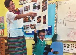 We learn best from each other. Each week a student shares artifacts from their personal and cultural lives (with help from their family members) to teach songs, recipes, & more! This brings learning of the world to life.